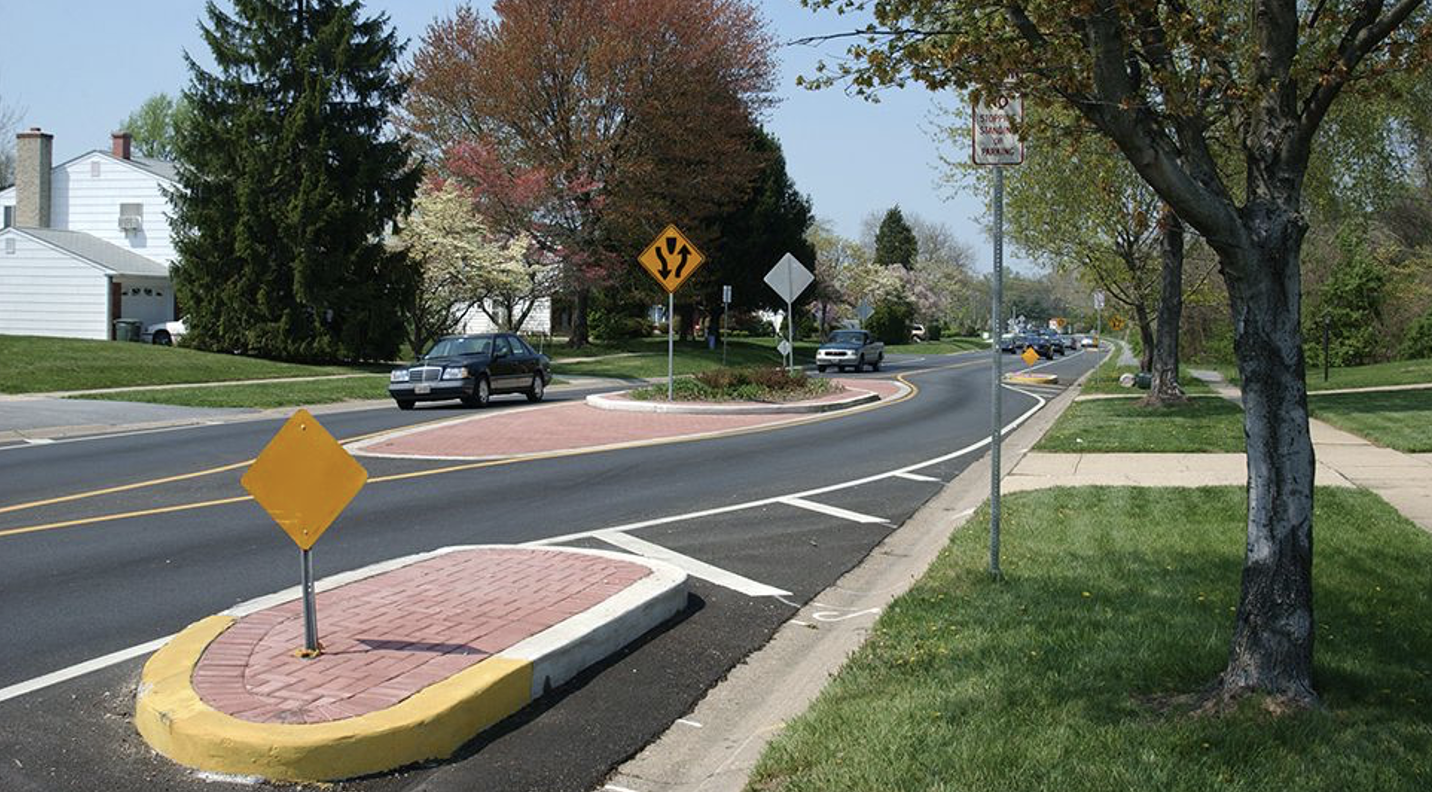 • May be difficult for large vehicles to navigate if not designed properly. Should not be used in industrial areas, or routes with significant truck, bus or emergency response activity.