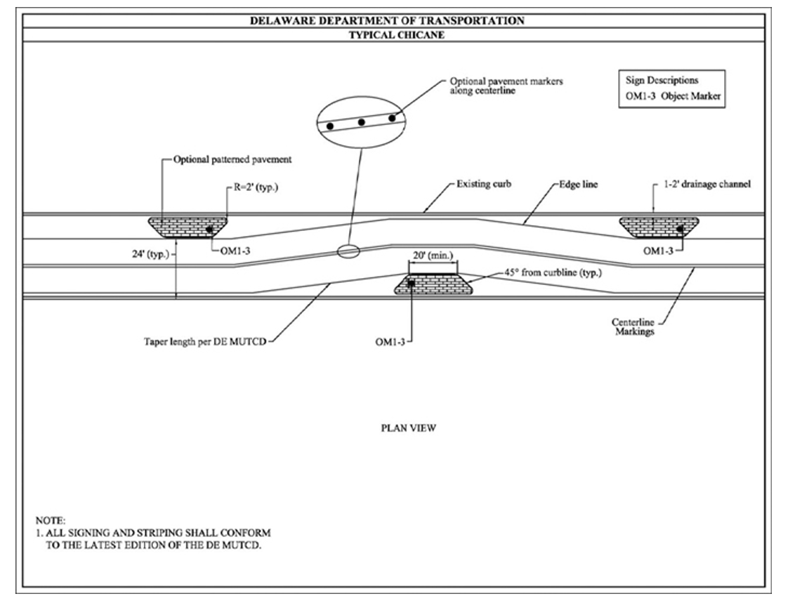 • Lateral Shifts and Chicanes encourage motorists to slow down when negotiating curves.