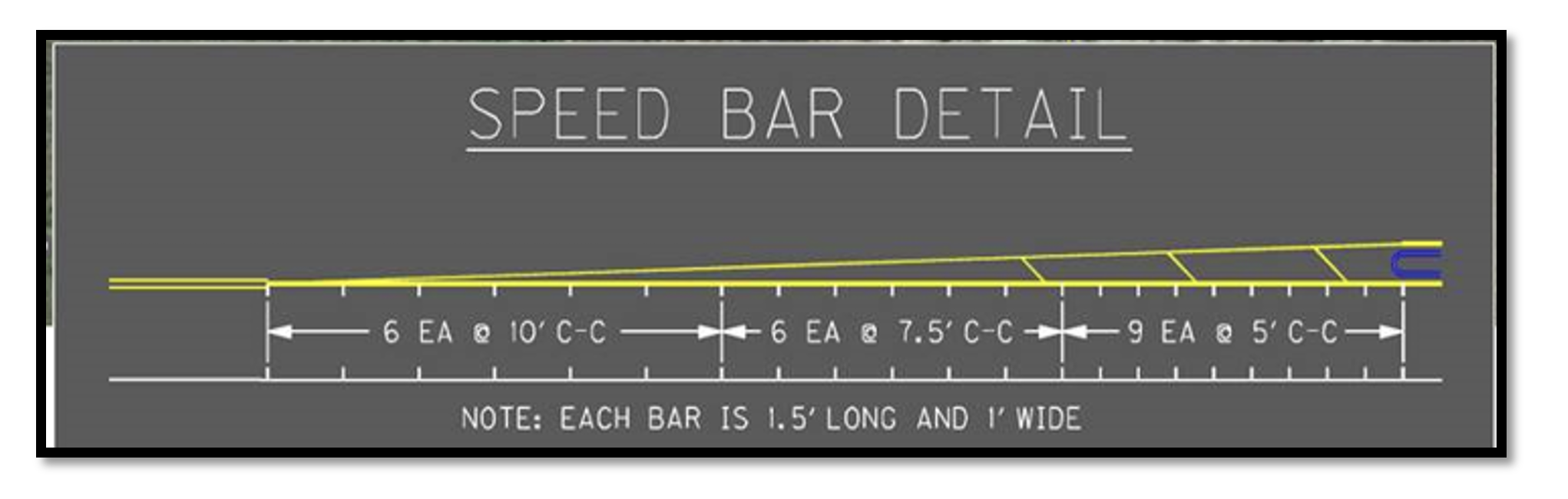 • Speed Reduction Markings are 1.5 feet long and 1 foot wide. Consult Section 3B.28 of the MUTCD for guidance.